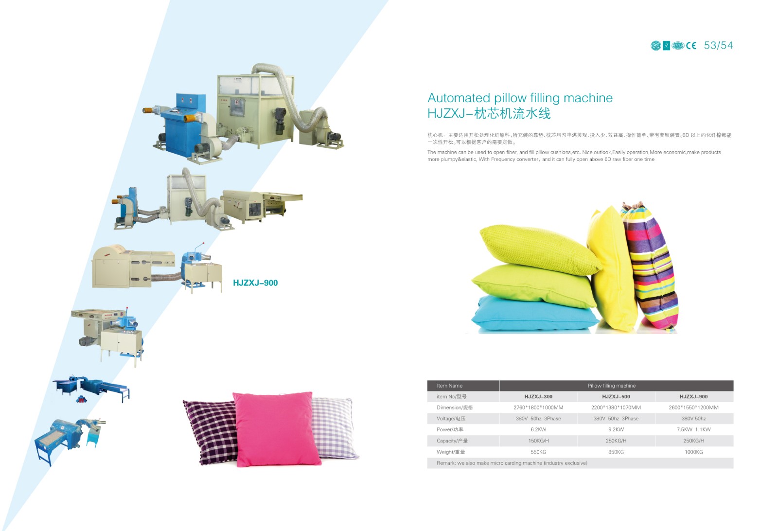 適用范圍:主要適用開松處理化纖原料,仿羽絨化纖,所充裝的靠墊、枕芯均勻豐滿、外形美觀、投入少、效益高、操作簡單、帶有變頻裝置。羽絨棉枕芯機(jī)。